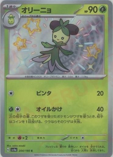 収録:シャイニートレジャーex コレクションナンバー:204/190 種類:ポケモン タイプ:草 カード名:オリーニョ レアリティ:S