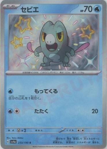 収録:シャイニートレジャーex コレクションナンバー:233/190 種類:ポケモン タイプ:水 カード名:セビエ レアリティ:S