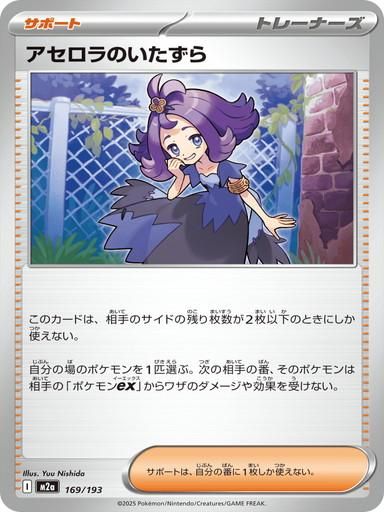 収録:MEGAドリームex コレクションナンバー:169/193 種類:トレーナーズ タイプ:サポート カード名:アセロラのいたずら レアリティ:-