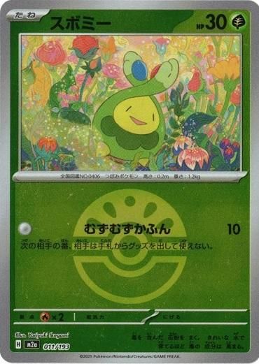 収録:MEGAドリームex コレクションナンバー:011/193 種類:ポケモン タイプ:草 カード名:スボミー レアリティ:-